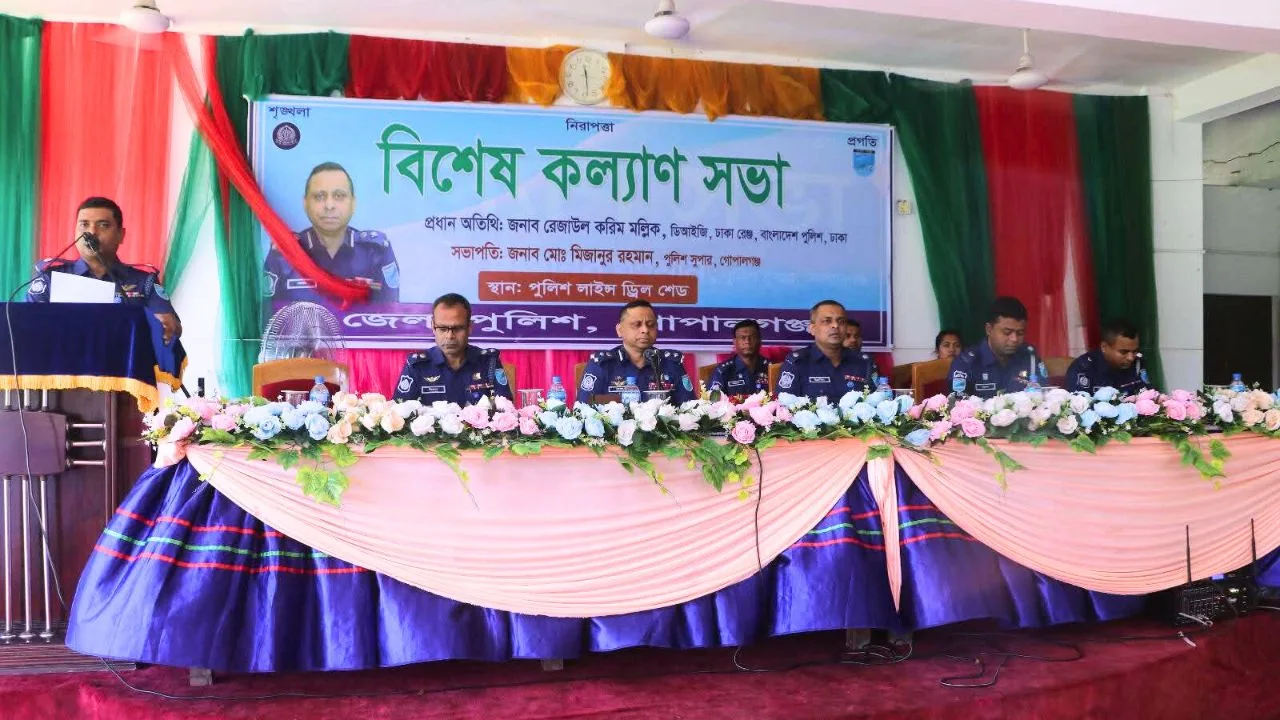 গোপালগঞ্জে ডিআইজি ঢাকা রেঞ্জের উপস্থিতিতে বিশেষ অপরাধ পর্যালোচনা ও কল্যাণ সভা অনুষ্ঠিত