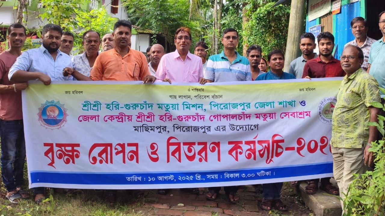 সবুজে ঘেরা একটি সুন্দর ভবিষ্যৎ গড়তে পিরোজপুরে অনুষ্ঠিত হলো বৃক্ষরোপণ ও চারা বিতরণ কর্মসূচি ২০২৫। শ্রীশ্রী হরি-গুরুচাঁদ মতুয়া মিশন পিরোজপুর জেলা শাখা এবং জেলা কেন্দ্রীয় শ্রীশ্রী হরি-গুরুচাঁদ গোপাল চাঁদ মতুয়া সেবাশ্রম, মাছিমপুরের উদ্যোগে এ কর্মসূচি রবিবার বিকালে সেবাশ্রম অঙ্গনে বেল গাছের চারা রোপণের মধ্য দিয়ে শুরু হয়।