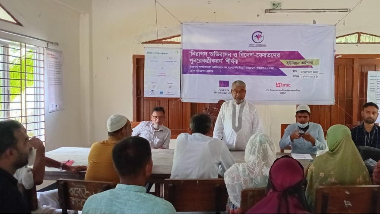 “ইম্প্রুভড সাসটেইনেবল রিইন্টিগ্রেশন অব বাংলাদেশি রিটার্নি মাইগ্রেন্টস (প্রত্যাশা ২)” প্রকল্পের আওতায় আয়োজিত এ কর্মশালার মূল বিষয় ছিল “নিরাপদ অভিবাসন ও বিদেশ ফেরতদের পুনরেকত্রীকরণ”।