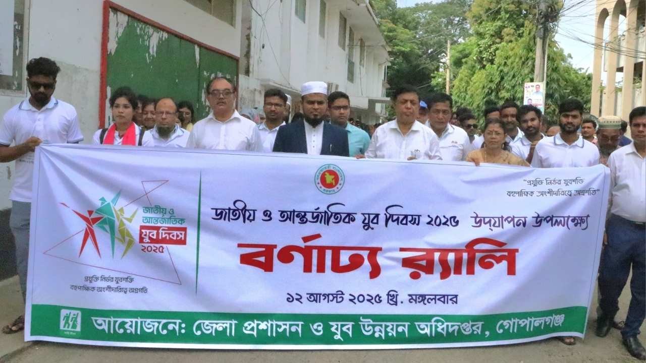 গোপালগঞ্জে জাতীয় ও আন্তর্জাতিক যুব দিবস-২০২৫ বর্ণাঢ্য শোভাযাত্রা ও আলোচনা সভার মধ্য দিয়ে উদযাপিত হয়েছে।