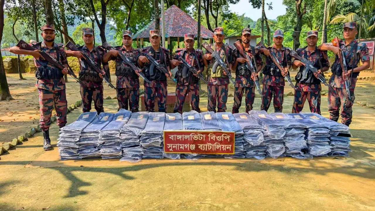 বিস্তারিত-২৮ বর্ডারগার্ড(বিজিবি)`র সুনামগঞ্জের মধ্যনগর উপজেলার ১নং বংশীকুন্ডা ইউনিয়নের বাংগালভিটা বিওপির সদস্যরা ভারতীয় সীমান্ত পিলারের ১১৯০/১৩ এস হতে ৩ শত গজ বাংলাদেশের অভ্যন্তরে কান্দাপাড়া নামক স্থান হতে মালিক বিহীন ২১০০ মিটার ভারতীয় অবৈধ ব্লেজারের কাপড় আটক করা হয়েছে।
