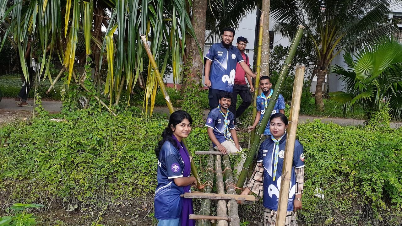 রোভার স্কাউটের উদ্যোগে পোল মাংকি ব্রীজ তৈরি