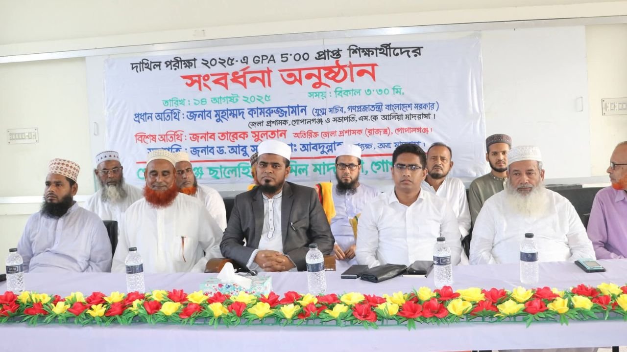 গোপালগঞ্জ এস কে আলীয়া মাদ্রাসায় দাখিল পরীক্ষায় জিপিএ-৫ প্রাপ্ত কৃতি শিক্ষার্থীদের সংবর্ধনা দিলেন ডিসি মুহম্মদ কামরুজ্জামান