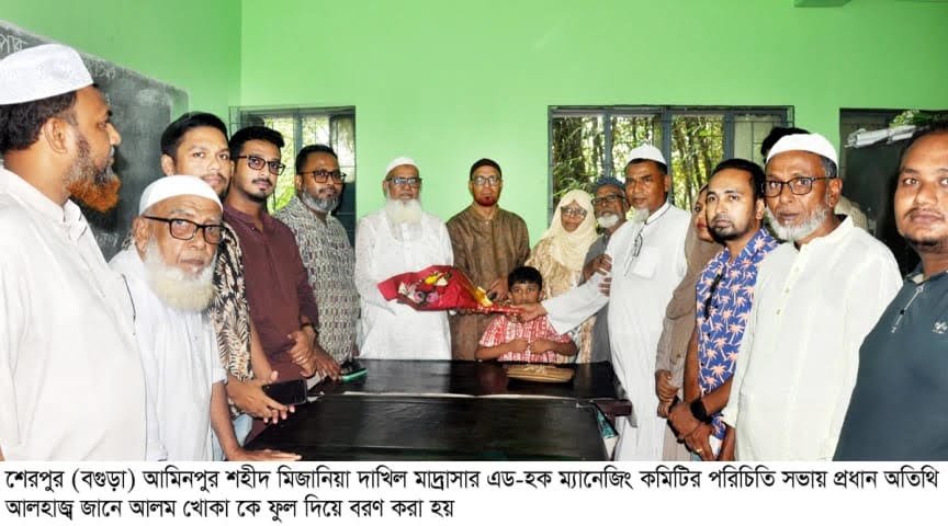বগুড়ার শেরপুরে আমিনপুর শহীদ মিজানিয়া দাখিল মাদ্রাসার নতুন এড-হক ম্যানেজিং কমিটির পরিচিতি ও মতবিনিময় সভা অনুষ্ঠিত হয়েছে। সোমবার (১৮ আগস্ট) দুপুরে আয়োজিত এ সভায় সভাপতিত্ব করেন ম্যানেজিং কমিটির সভাপতি অ্যাডভোকেট এসএম আবুল কালাম আজাদ।