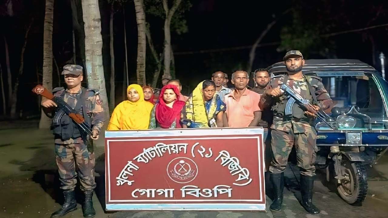 বৃহস্পতিবার (২১ আগস্ট) ভোরে উপজেলার গোগা সীমান্তের বাংলাদেশের অভ্যন্তরে সালামের মোড় এলাকা থেকে তাদের আটক করা হয়। আটক ব্যক্তিরা হলেন—সাধনা বিশ্বাস (৫৫), সুভাষ বিশ্বাস (৬০), পিতো বিশ্বাস (৬২), হাবিবুর রহমান (৩৩), ফাহিমা খাতুন (২২), মোমিনা বেগম (৩৫), জান্নাতুল ফেরদৌস (৩৯) ও অর্পনা বিশ্বাস (৪৩)। তারা যশোর, নড়াইল, মাদারীপুর ও ঢাকা জেলার বিভিন্ন এলাকার বাসিন্দা।