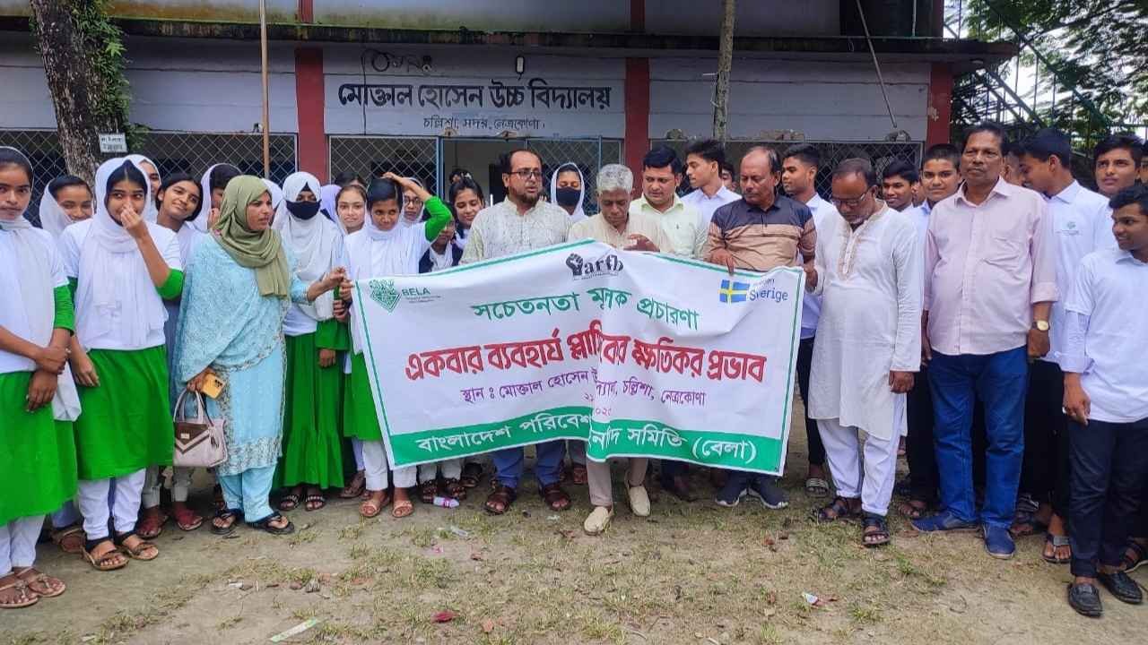 একবার ব্যবহার্য প্লাস্টিকের ক্ষতিকর প্রভাব বিষয়ে সচেতনতা বৃদ্ধির লক্ষ্যে নেত্রকোণায় স্কুল ক্যাম্পেইন অনুষ্ঠিত হয়েছে।
