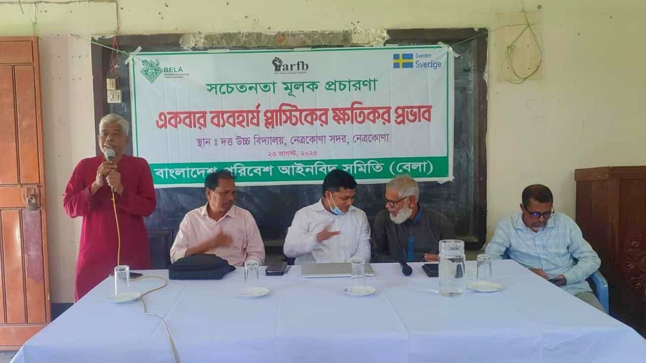 একবার ব্যবহার্য প্লাস্টিকের ক্ষতিকর প্রভাব বিষয়ে সচেতনতা বৃদ্ধির লক্ষ্যে নেত্রকোণায় স্কুল ক্যাম্পেইন অনুষ্ঠিত হয়েছে। বৃহস্পতিবার (২৩ আগস্ট) সকাল ১১টায় নেত্রকোণা দত্ত উচ্চ বিদ্যালয়ে বাংলাদেশ পরিবেশ আইনবিদ সমিতি (বেলা) আয়োজনে এবং আব্দুর রহমান ফাউন্ডেশন বাংলাদেশ (এআরএফবি)র সহযোগিতায় এই ক্যাম্পেইন অনুষ্ঠিত হয়।