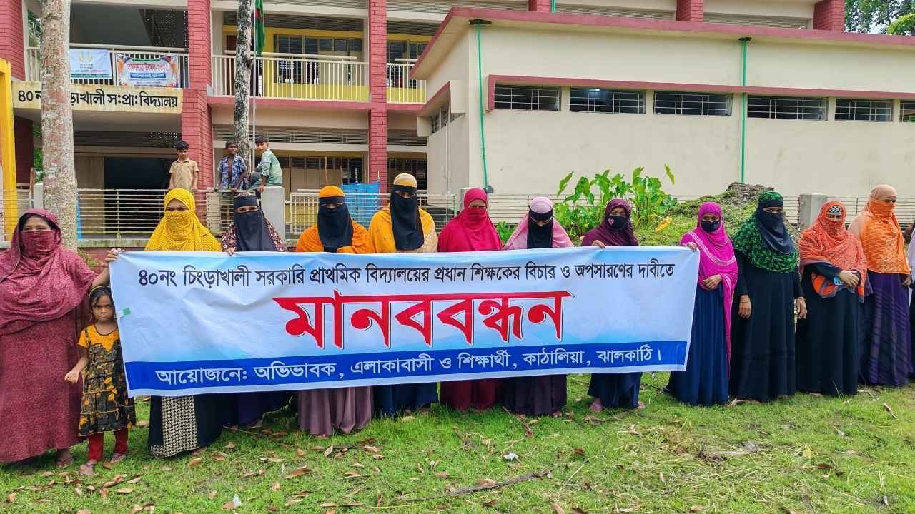 ঝালকাঠির কাঠালিয়ার চিংড়াখালী সরকারি প্রাথমিক বিদ্যালয়ের প্রধান শিক্ষকের দুর্নীতি ও নানা অনিয়মের প্রতিবাদে অভিভাবক ও এলাকাবাসী মানববন্ধন ও বিক্ষোভ কর্মসূচি পালন করেছেন।
