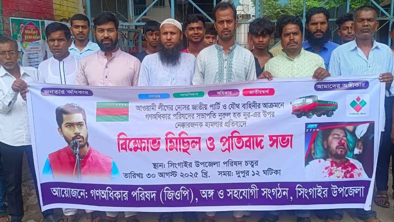 ভিপি নুরের উপর হামলা : সিংগাইরে বিক্ষোভ মিছিল