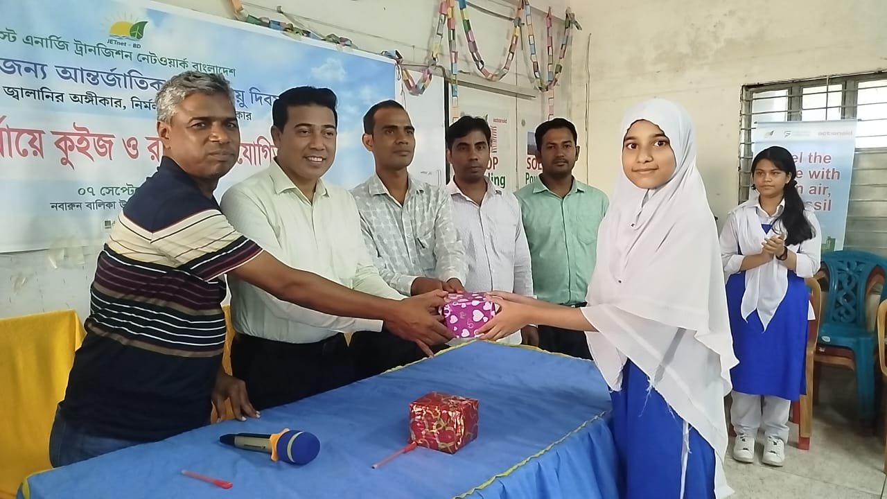 ন্যায্য জ্বালানির অঙ্গীকার, নির্মল বায়ু সবার অধিকার’—এই প্রতিপাদ্যকে সামনে রেখে সাতক্ষীরায় উদযাপিত হলো আন্তর্জাতিক নির্মল বায়ু দিবস-২০২৫। দিবসটি উপলক্ষে সুন্দরবন ফাউন্ডেশনের আয়োজনে এবং জাস্ট এনার্জি ট্রানজিশন নেটওয়ার্ক বাংলাদেশ (জেটনেট বিডি)-এর সহযোগিতায় নবারুণ বালিকা উচ্চ বিদ্যালয়ে অনুষ্ঠিত হয় কুইজ ও রচনা প্রতিযোগিতা।