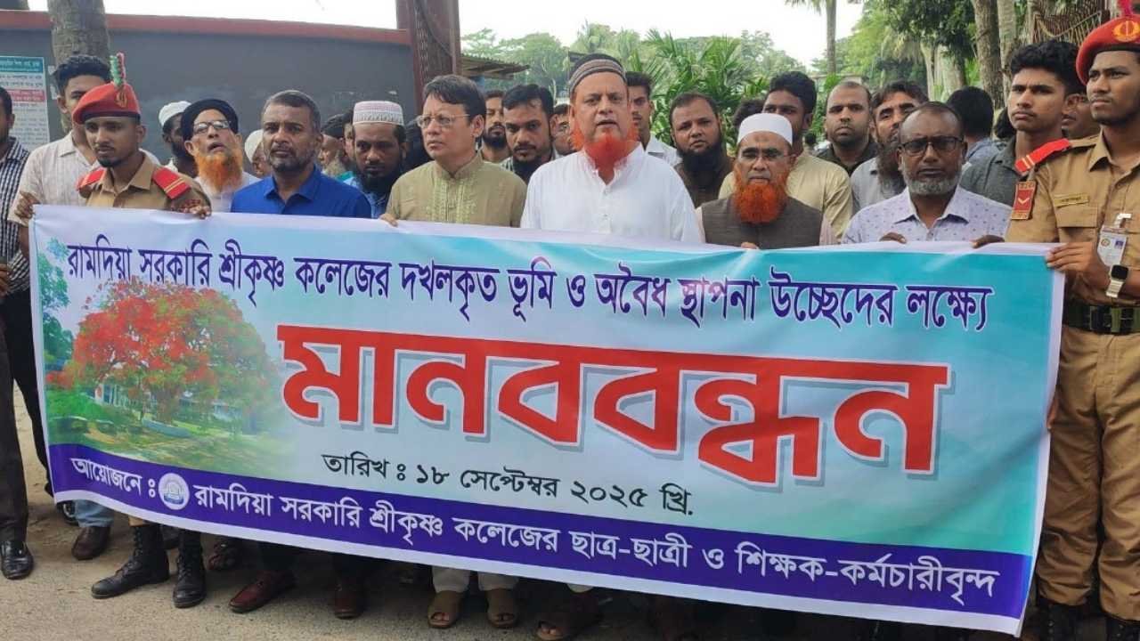 গোপালগঞ্জে সরকারি শ্রীকৃষ্ণ কলেজের বেদখলকৃত জমি উদ্ধারে মানববন্ধন