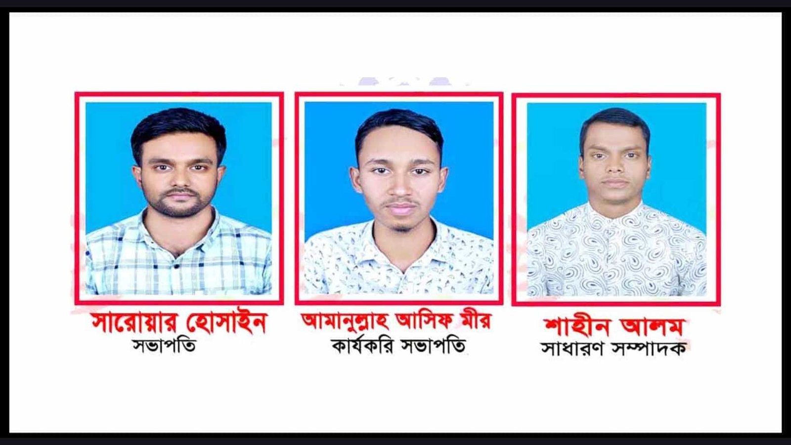 কমিটির অন্যান্য সদস্যরা হলেন— সহ-সভাপতি: নাঈম মিয়া, যুগ্ম সাধারণ সম্পাদক: আনিছুর রহমান ও ফরিদুল ইসলাম শামীম, সাংগঠনিক সম্পাদক: সাজন চন্দ্র শীল, কোষাধ্যক্ষ: নুর আলম হাসান নয়ন, দপ্তর ও প্রচার সম্পাদক: জায়েদ মাহমুদ রিজন, ধর্ম বিষয়ক সম্পাদক: মাসুদ রানা মারুফ, আইটি বিষয়ক সম্পাদক: মিঠুন মিয়া, শিক্ষা ও সাংস্কৃতিক বিষয়ক সম্পাদক: শুয়াইব ইসলাম শিপন, আন্তর্জাতিক বিষয়ক সম্পাদক: রাকিব হাসান রনি, ক্রীড়া সম্পাদক: তানিম আহমেদ ও সাহিত্য বিষয়ক সম্পাদক: আল আমিন ইসলাম কাব্য।
