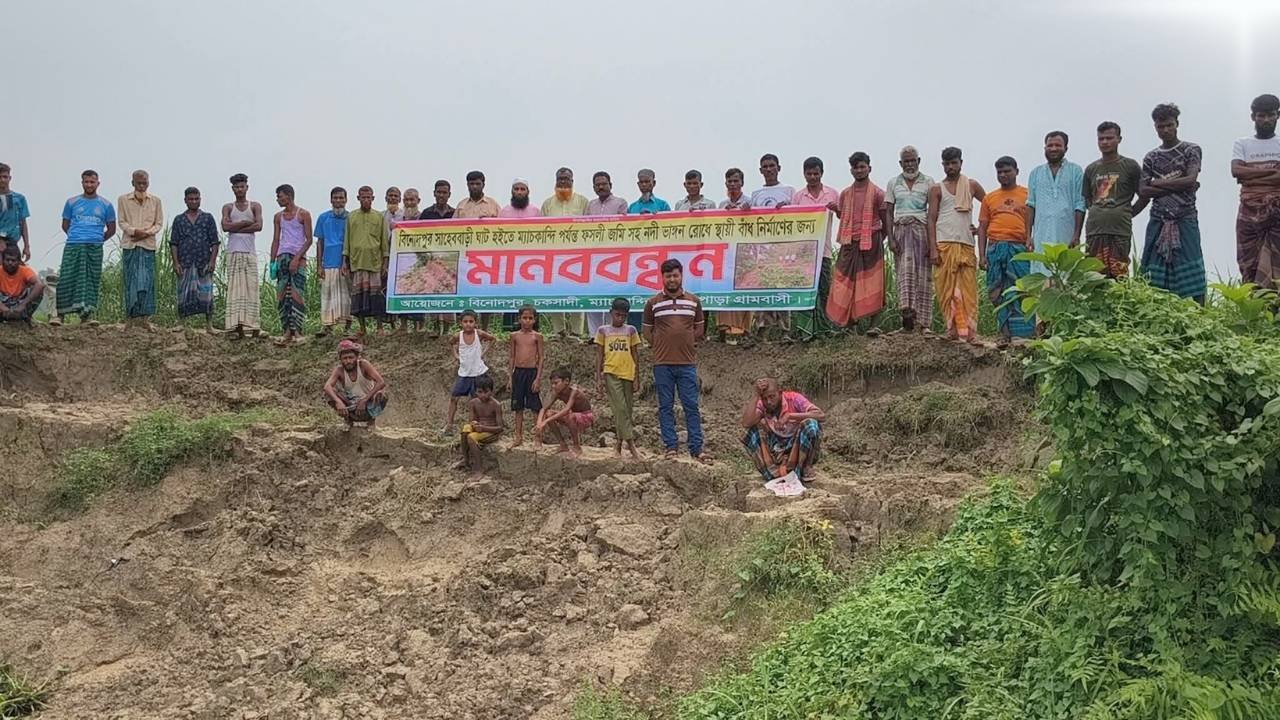 মানববন্ধনে বক্তারা অবিলম্বে নদী ভাঙন রোধ ও রাস্তা সংস্কারের জন্য সরকারের জরুরি হস্তক্ষেপ দাবি করেন।