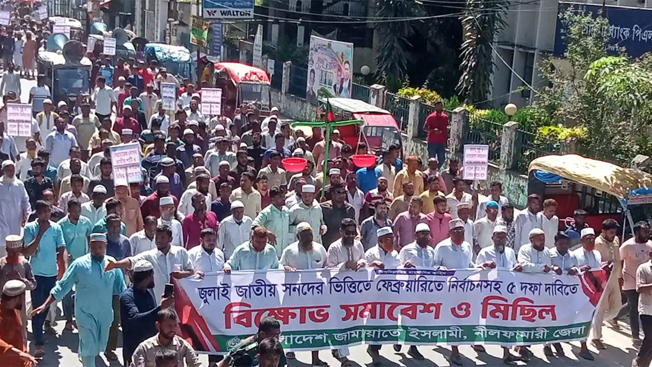 পিআর পদ্ধতিসহ ৫ দফা: নীলফামারীর রাজপথে জামায়াতের বিক্ষোভ সমাবেশ