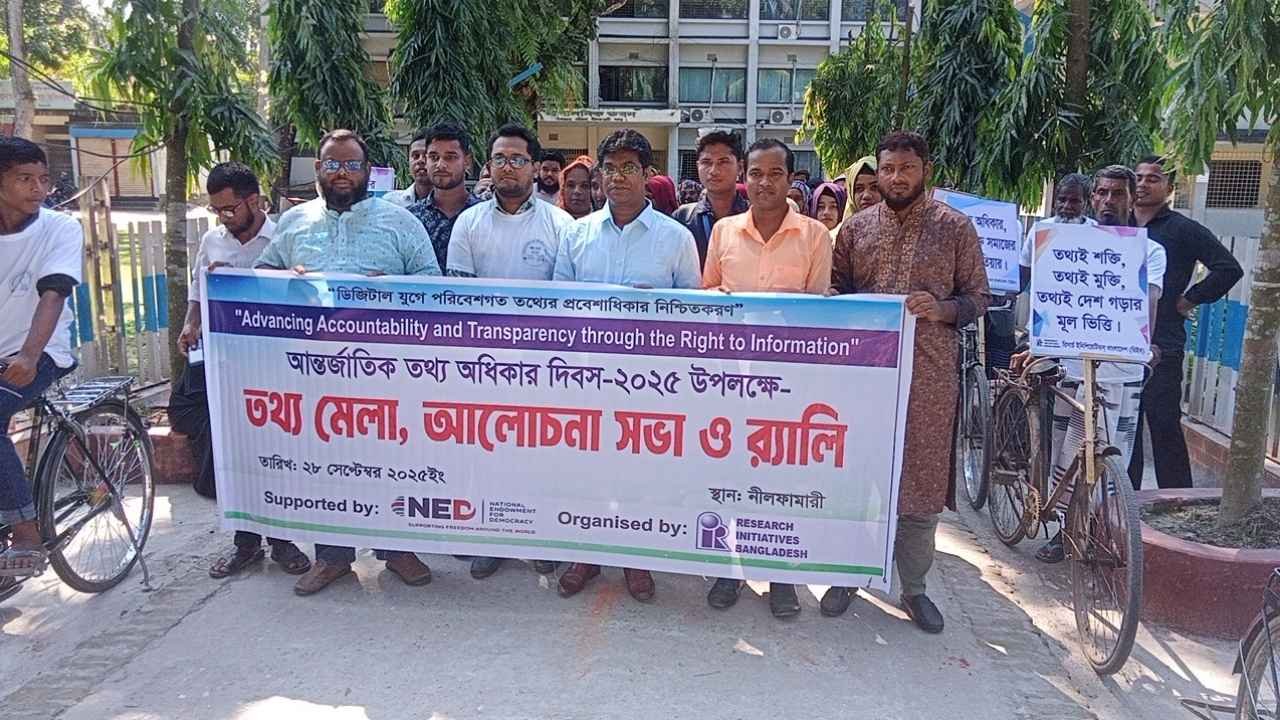 আন্তর্জাতিক তথ্য অধিকার দিবস (২০২৫) উপলক্ষে নীলফামারীতে রিসার্চ ইনিশিয়েটিভস্ বাংলাদেশ (রিইব) এর আয়োজনে র্যালি, তথ্য মেলা ও আলোচনা সভা অনুষ্ঠিত হয়েছে।