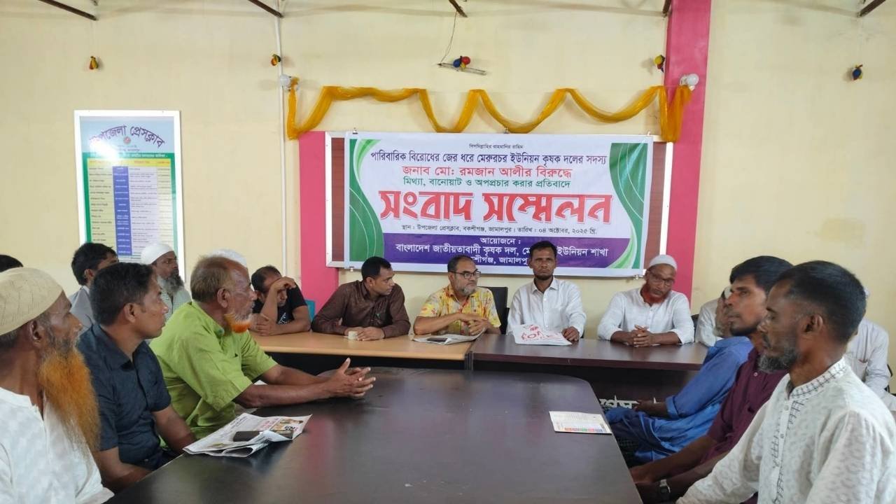 শনিবার (০৪ অক্টোবর) সকালে বকশীগঞ্জ উপজেলা প্রেসক্লাবের অফিসে সংবাদ সম্মেলন করেন ৯ নং ওয়ার্ড আওয়ামী লীগের বন ও পরিবেশ বিষয়ক সম্পাদক রমজান আলী (৪২)। এতে তিনি নিজেকে কৃষকদলের সদস্য পরিচয় দিয়ে বক্তব্য রাখেন।