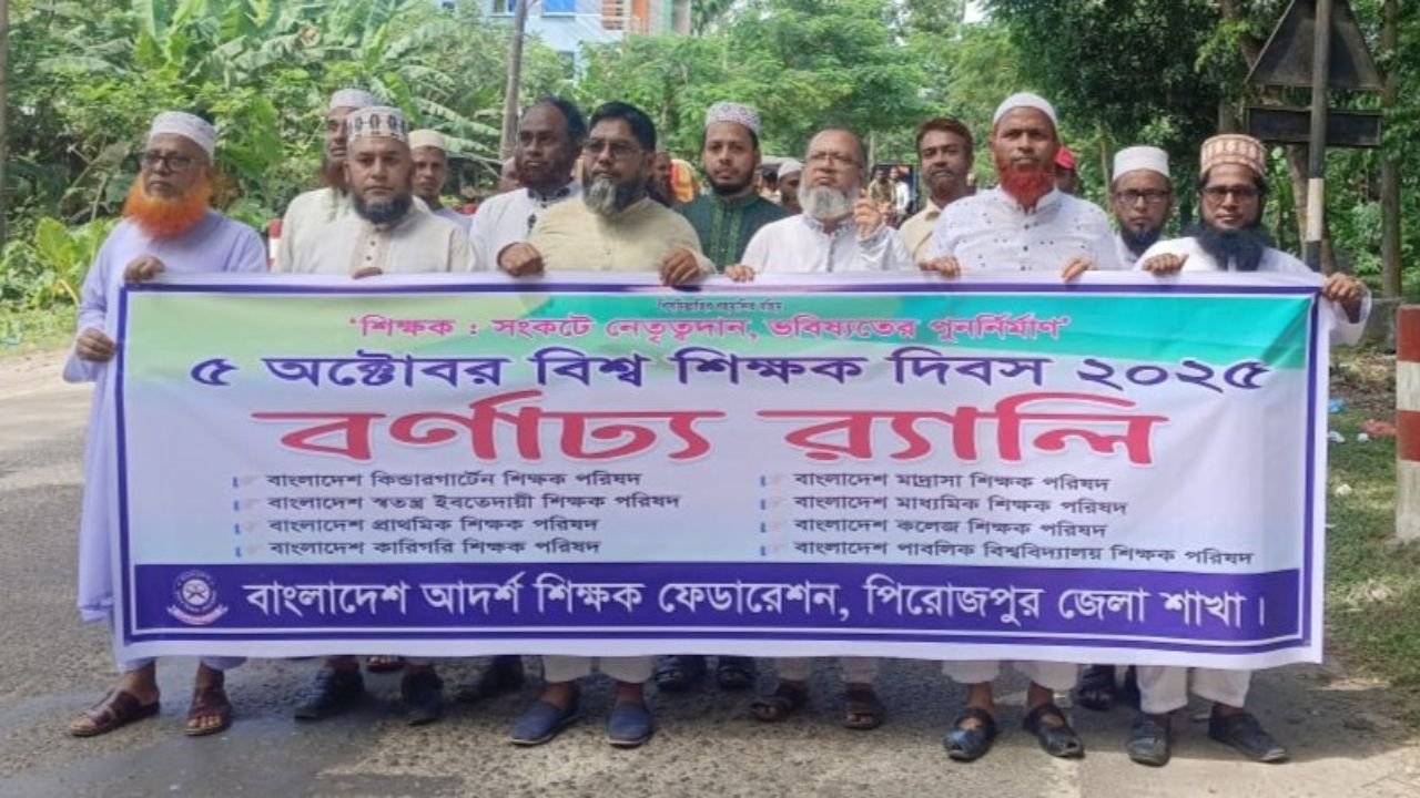 বিশ্ব শিক্ষক দিবস উপলক্ষে “শিক্ষক পেশা, মিলিত প্রচেষ্টার দীপ্তি” এবং ‘শিক্ষক সংকটে নেতৃত্বদান, ভবিষ্যতের পুনর্নির্মাণ’ এই প্রতিপাদ্যকে সামনে রেখে পিরোজপুরে বর্ণাঢ্য র্যালি ও আলোচনা সভা অনুষ্ঠিত হয়েছে। রবিবার (৫ অক্টোবর) সকাল ১১টায় জেলা প্রশাসন, জেলা শিক্ষা পরিবার ও আদর্শ শিক্ষক ফেডারেশনের জেলা শাখার যৌথ উদ্যোগে আয়োজিত এই কর্মসূচিতে জেলার বিভিন্ন শিক্ষা প্রতিষ্ঠানের শতাধিক শিক্ষক অংশগ্রহণ করেন।