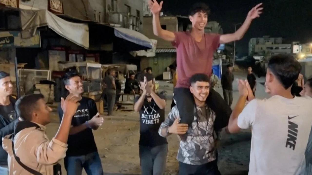 ইসরায়েল ও ফিলিস্তিনের গাজা উপত্যকা নিয়ন্ত্রণকারী রাজনৈতিক গোষ্ঠী হামাসের যুদ্ধবিরতি চুক্তিতে স্বাক্ষরের খবরে আনন্দে ভাসছে গাজা। কেউ খুশিতে কাঁদছেন, কেউ হাততালি দিচ্ছেন, আবার কেউ বাঁশি বাজিয়ে, গান গেয়ে ও নেচে চিৎকার করে বলছেন— “আল্লাহু আকবর!”