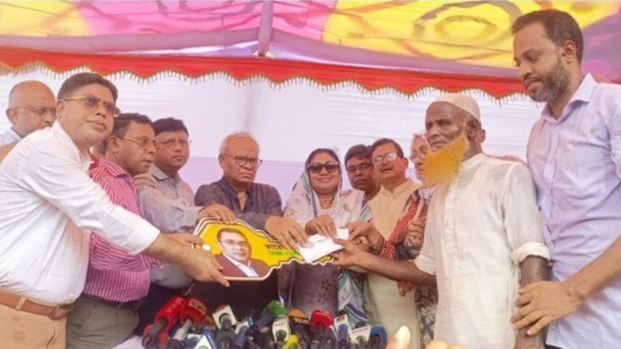পরে আনুষ্ঠানিকভাবে প্রবীণ মোস্তাকিন আলী দম্পতির হাতে তারেক রহমানের পক্ষ থেকে ‘ঘানির জন্য গরু’ কেনার জন্য নগদ অর্থ এবং তাদের পরিবারের স্বাবলম্বিতার লক্ষ্যে ব্যাটারি চালিত দুটি অটো ভ্যানের চাবি তুলে দেন অ্যাডভোকেট রুহুল কবির রিজভী।
