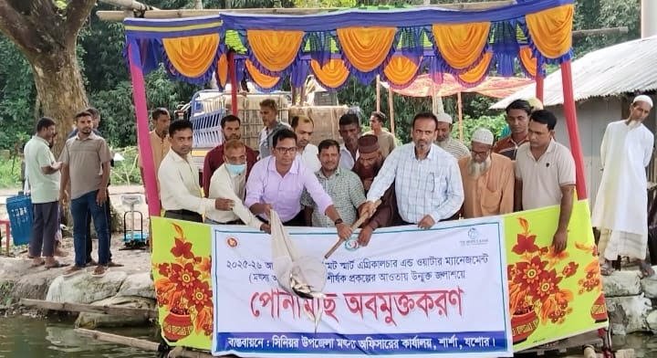 শার্শায় উন্মুক্ত জলাশয়ে পোনামাছ অবমুক্তকরণ