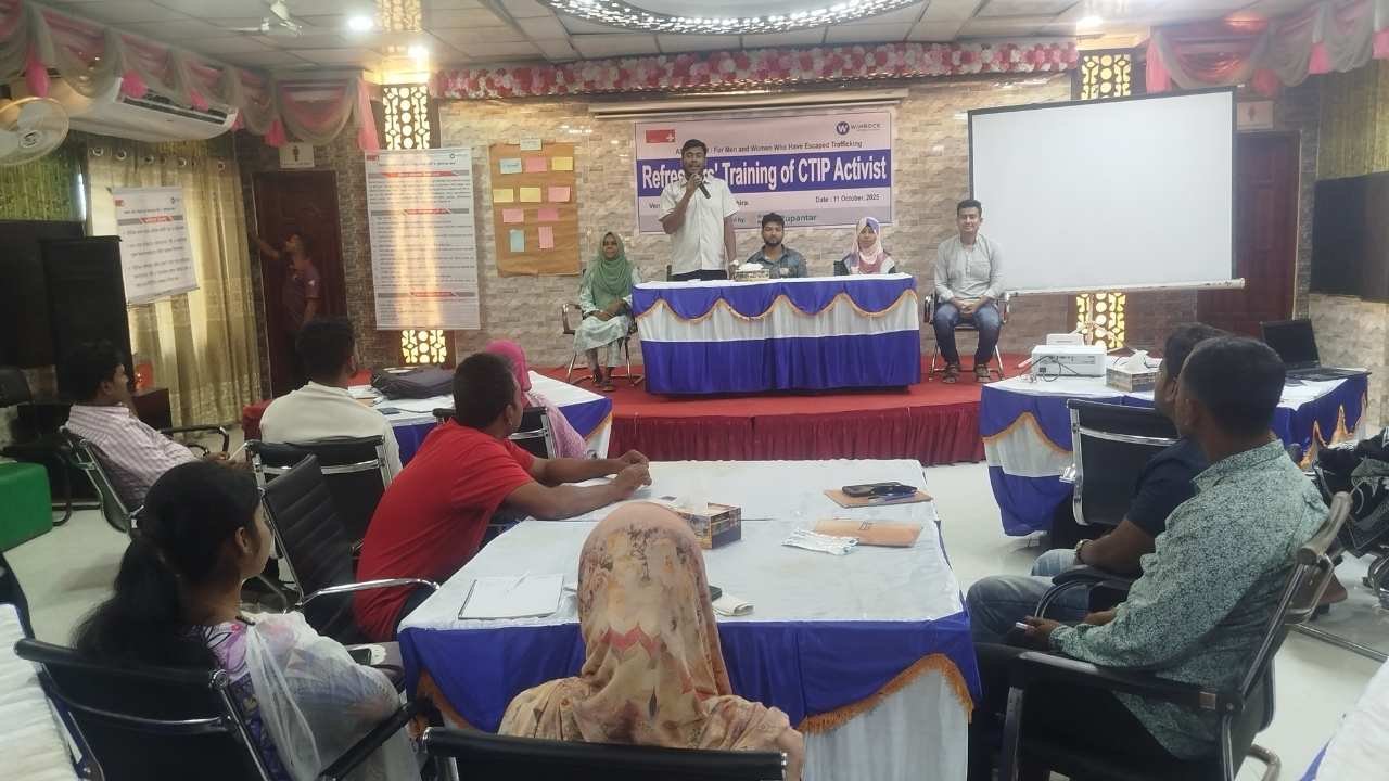 মানব পাচার হতে উদ্ধারপ্রাপ্ত নারী ও পুরুষদের সহায়তা প্রদান এবং পাচার প্রতিরোধ কার্যক্রমকে আরও শক্তিশালী করার লক্ষ্যে সাতক্ষীরায় সিটিআইপি অ্যাক্টিভিস্টদের (কাউন্টার ট্রাফিকিং ইন পার্সন্স) জন্য একদিনব্যাপী রিফ্রেশার্স প্রশিক্ষণ অনুষ্ঠিত হয়েছে।