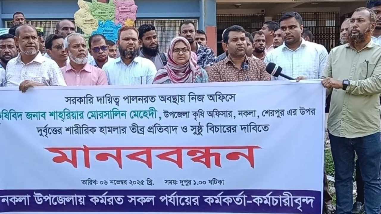 ঘটনার পরপরই নকলা উপজেলায় কর্মরত সকল পর্যায়ের কর্মকর্তা ও কর্মচারীরা বৃহষ্পতিবার (৬ নভেম্বর) দুপুর দুইটায় দৃষ্টান্তমূলক শাস্তির দাবিতে মানববন্ধন করেন।