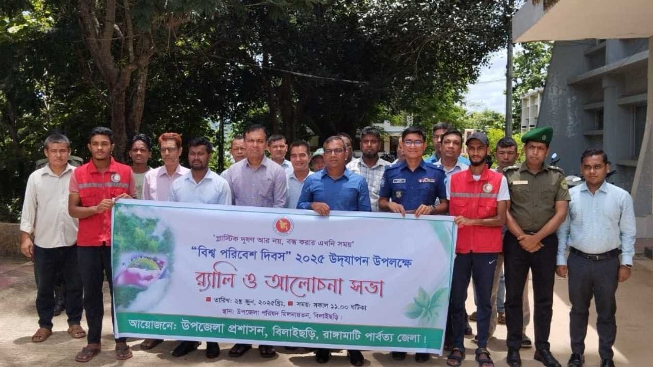 “প্লাস্টিক দূষণ আর নয়, বন্ধ করার এখনই সময়”—এই প্রতিপাদ্যে রাঙামাটির বিলাইছড়িতে পালিত হয়েছে বিশ্ব পরিবেশ দিবস ২০২৫। উপজেলা প্রশাসনের উদ্যোগে আয়োজিত কর্মসূচির মধ্যে ছিল বর্ণাঢ্য র্যালি ও আলোচনা সভা।