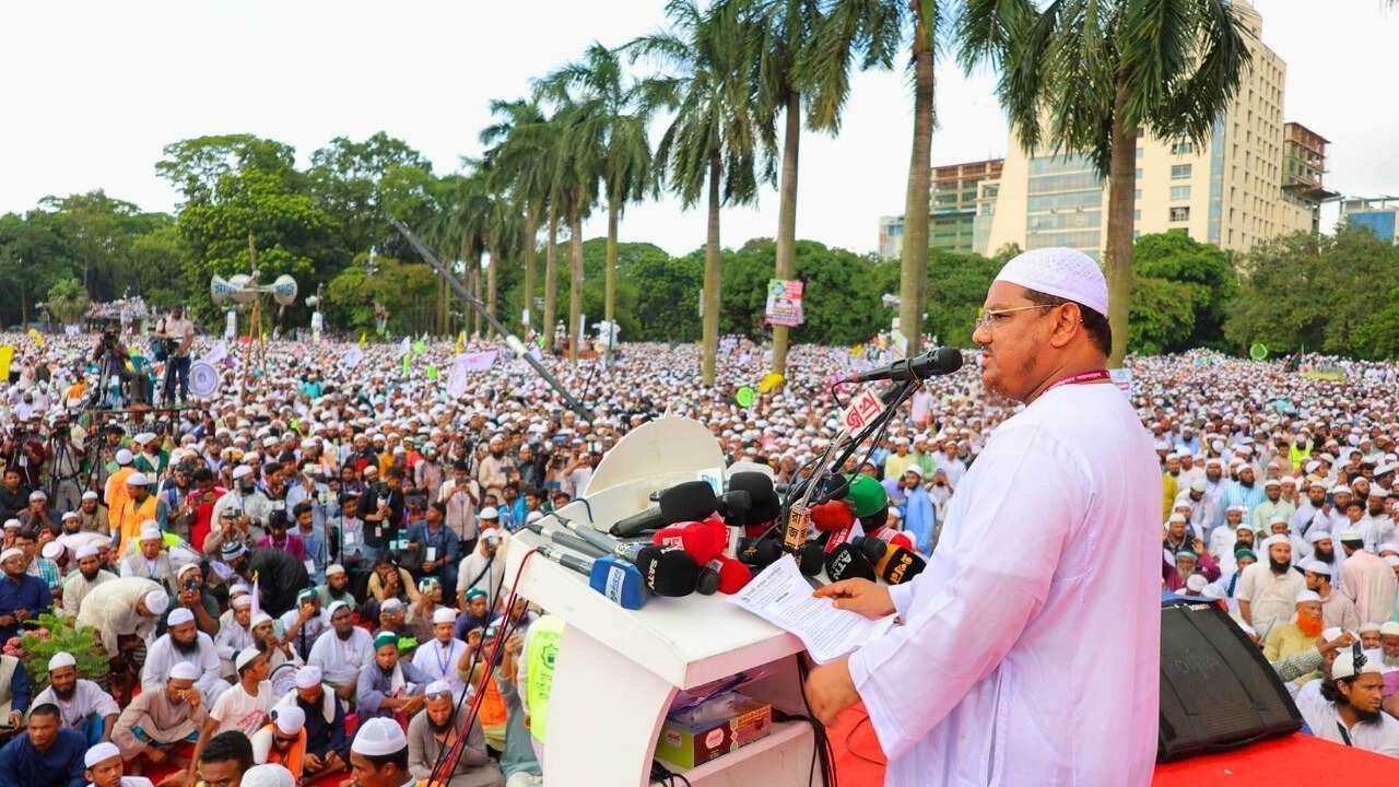 শনিবার বিকেলে রাজধানীর ঐতিহাসিক সোহরাওয়ার্দী উদ্যানে ইসলামী আন্দোলন বাংলাদেশের আয়োজনে অনুষ্ঠিত মহাসমাবেশে সভাপতির বক্তব্যে তিনি এসব কথা বলেন।