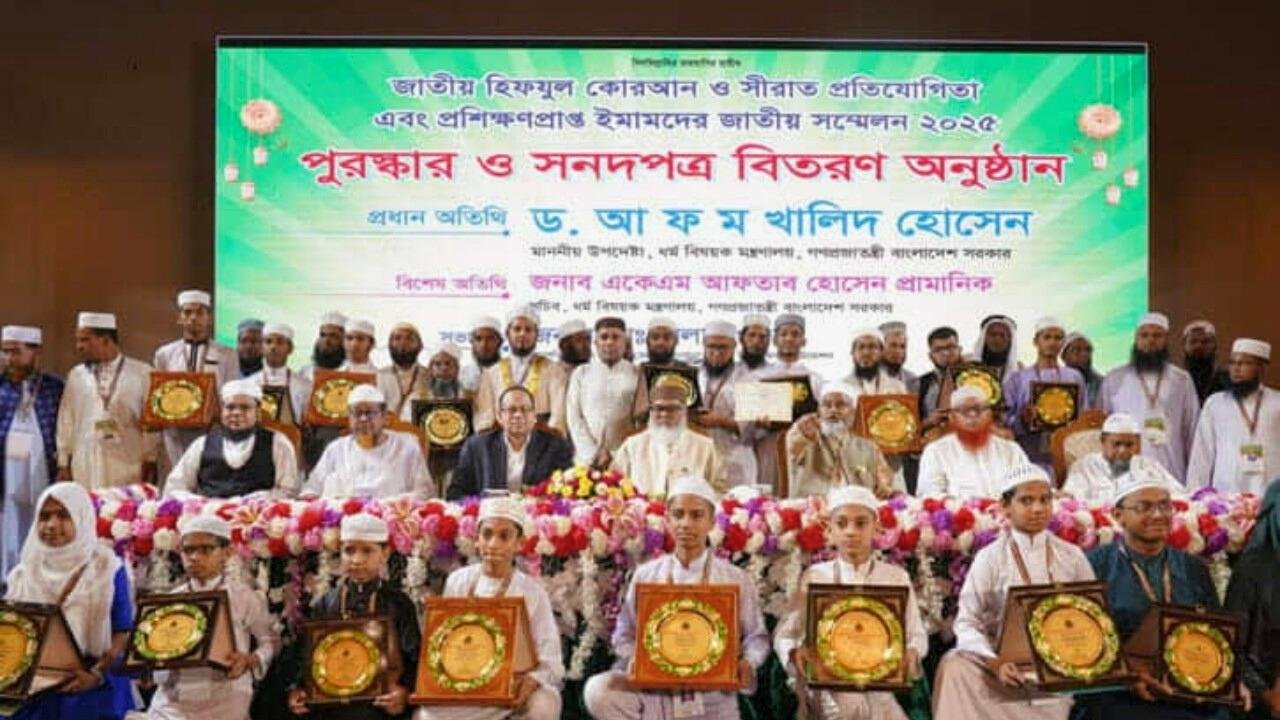 রোববার রাজধানীর ওসমানী স্মৃতি মিলনায়তনে অনুষ্ঠিত জাতীয় হিফজুল কোরআন ও সিরাত প্রতিযোগিতা এবং প্রশিক্ষণপ্রাপ্ত ইমামদের জাতীয় সম্মেলন ২০২৫-এ প্রধান অতিথির বক্তব্যে তিনি বলেন: