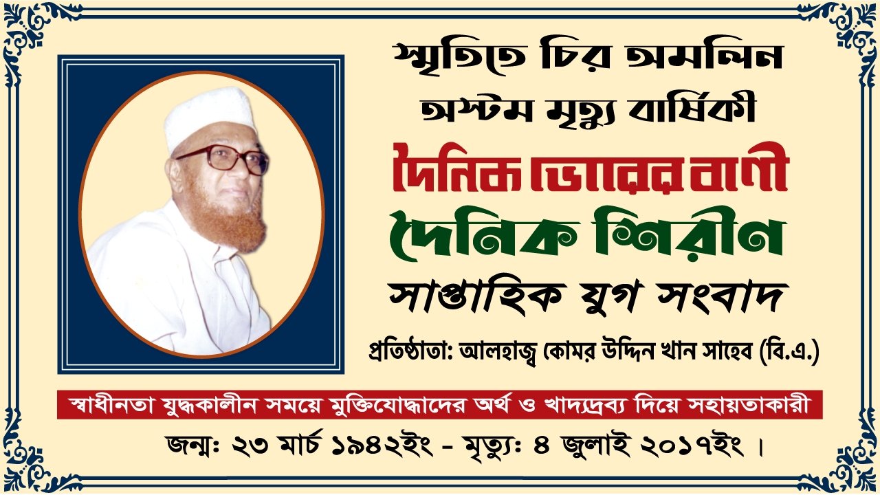 ভোরের বাণী’র প্রতিষ্ঠাতা আলহাজ্ব মোঃ কোমর উদ্দিন খান সাহেব এর অস্টম মৃত্যু বার্ষিকী