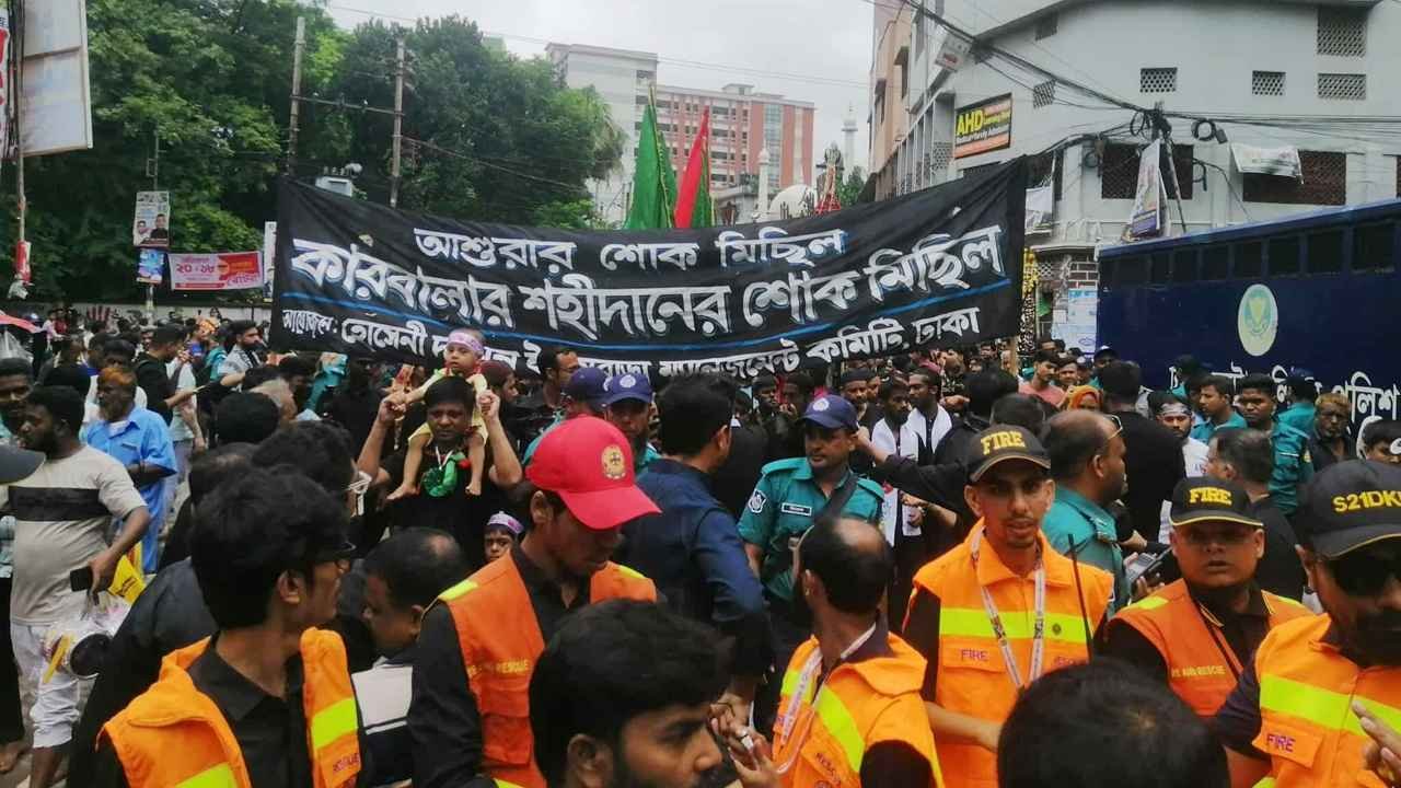পবিত্র আশুরা উপলক্ষে রাজধানীর পুরান ঢাকায় শিয়া সম্প্রদায়ের শোকাবহ তাজিয়া মিছিল শুরু হয়েছে। নিশ্ছিদ্র নিরাপত্তাবলয়ের মধ্যে রোববার (৬ জুলাই) সকাল ১০টায় ৪০০ বছরের ঐতিহাসিক হোসনি দালান ইমামবাড়া থেকে মিছিলটি যাত্রা করে।