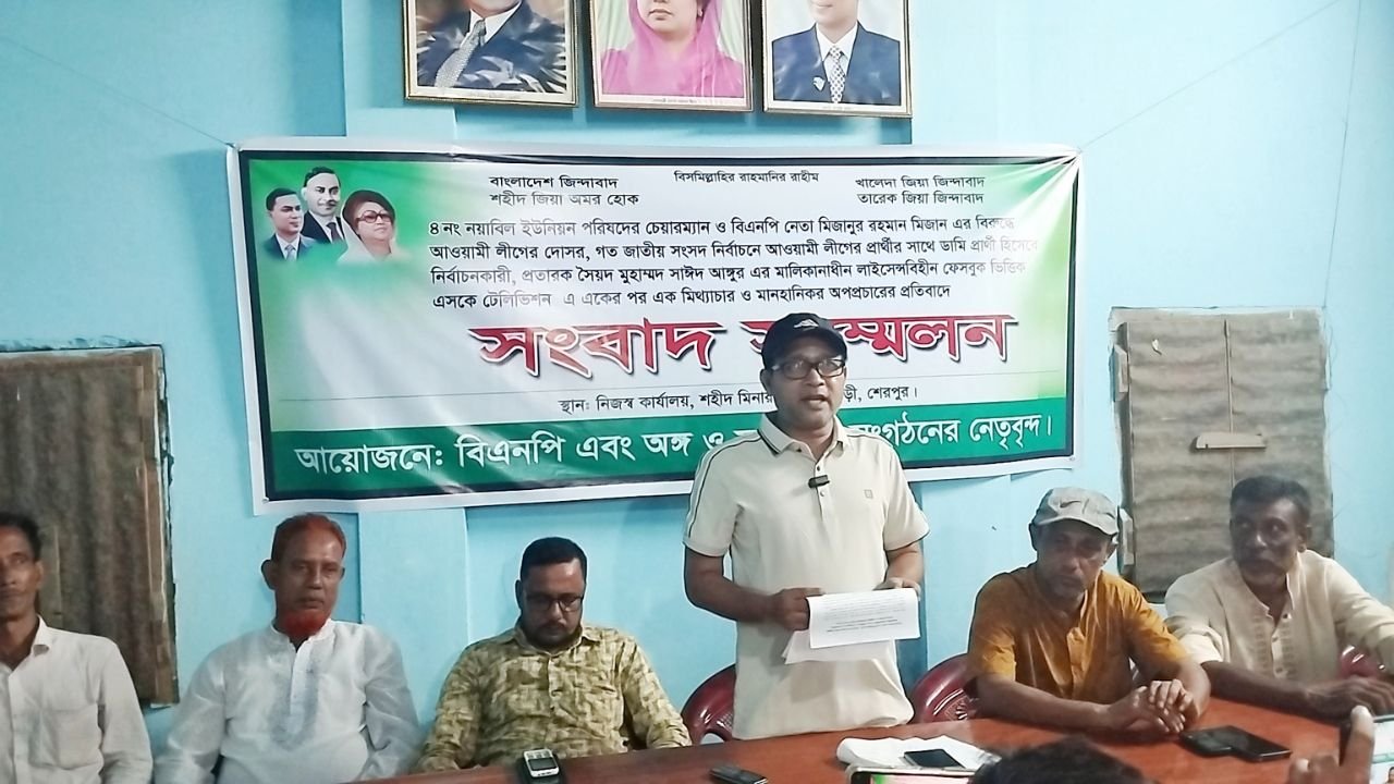 সংবাদ সম্মেলনে লিখিত বক্তব্যে ইউপি চেয়ারম্যান ও বিএনপি নেতা মিজানুর রহমানবলেন , গত দ্বাদশ জাতীয় সংসদ নির্বাচনে আওয়ামী লীগের হেভিওয়েট প্রার্থী প্রয়াত বেগম মতিয়া চৌধুরীর ড্যামি প্রার্থী হিসেবে সংসদ সদস্য পদে অংশ নেন ঢাকাস্থ নালিতাবাড়ীর সৈয়দ মুহাম্মদ সাঈদ আঙ্গুর। ওই সময় আওয়ামী লীগের টাকায় নির্বাচনে অংশ নিয়ে এখন জনতার দলের পদ-পদবী নিয়ে এলাকায় প্রচারণা চালাচ্ছেন। সে কারণেই বিএনপি’র ভাবমূূর্তি নষ্ট করতে সাঈদ আঙ্গুর তার মালিকানাধীন নিবন্ধনহীন নামসর্বস্ব এসকে টেলিভিশন নামে একটি পেজ থেকে আমার বিরুদ্ধে নানা অপপ্রচার চালিয়ে আসছে।