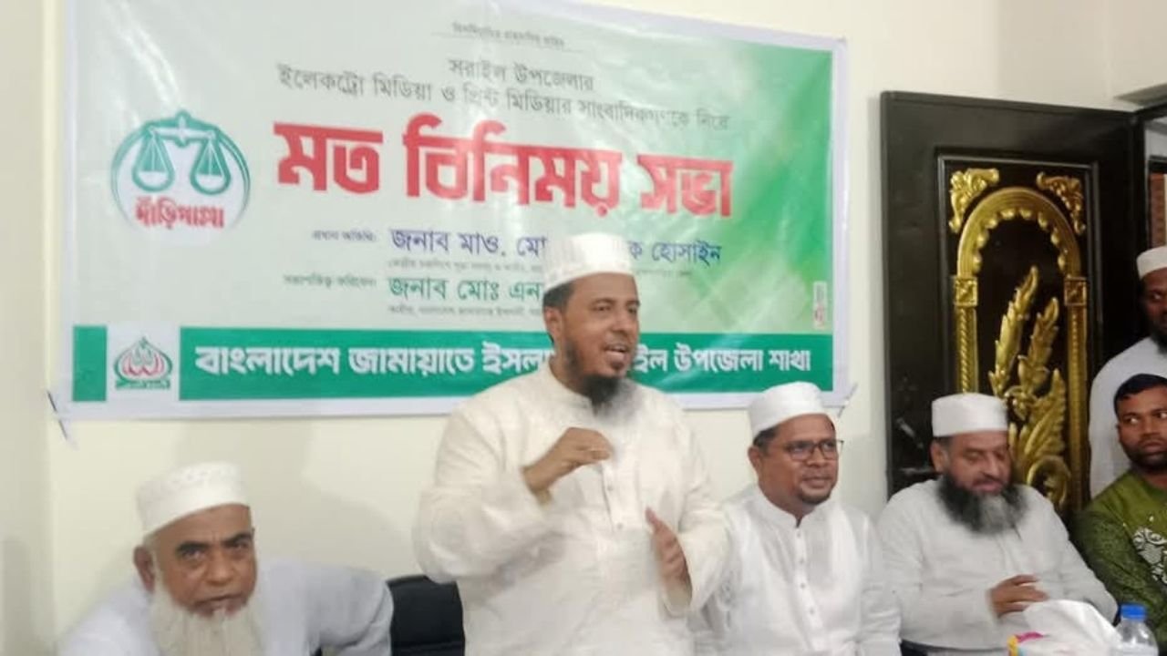 মঙ্গলবার (৮ জুলাই) রাতে সরাইল উপজেলা জামায়াতে ইসলামীর দলীয় কার্যালয়ে আয়োজিত এ সভায় স্থানীয় প্রিন্ট ও ইলেকট্রনিক মিডিয়ার সংবাদকর্মীরা উপস্থিত ছিলেন।