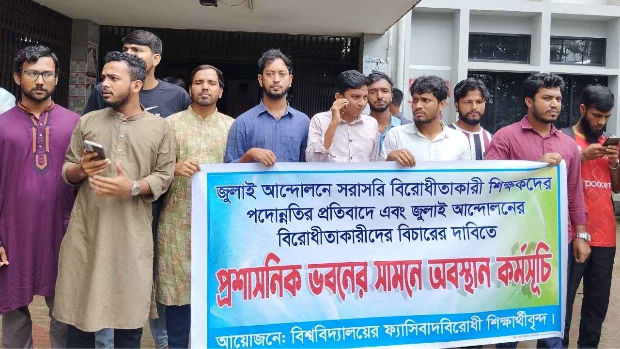 গোবিপ্রবিতে জুলাই আন্দোলনের বিরোধিতাকারী শিক্ষকদের পদোন্নতির প্রতিবাদে অবস্থান কর্মসূচি