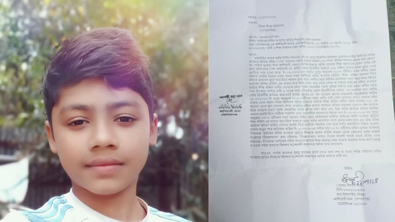 গোপালগঞ্জের কাশিয়ানী উপজেলায় জমি সংক্রান্ত বিরোধের জের ধরে এক অষ্টম শ্রেণির স্কুলছাত্রের বিরুদ্ধে ধর্ষণচেষ্টার মামলা দায়েরের অভিযোগ উঠেছে। অভিযুক্ত রমজান (রাব্বি) মোল্লা (১৫) বর্তমানে যশোর শিশু উন্নয়ন কেন্দ্রে আটক রয়েছে। এই ঘটনায় এলাকায় তীব্র প্রতিক্রিয়া ও ব্যাপক সমালোচনা দেখা দিয়েছে।