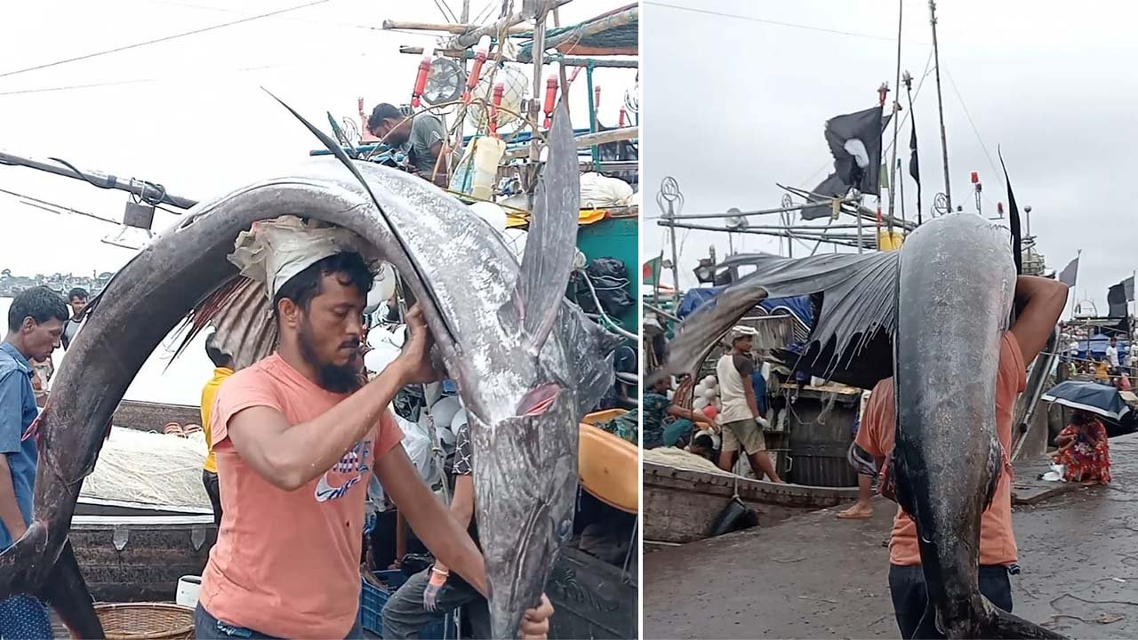 মাছগুলো নিয়ে আসা হয় আলীপুর মৎস্য আড়তের বিএফডিসি মার্কেটে, যেখানে এক নজর দেখতে ধরে লোকজনের ভিড় জমে যায়।
