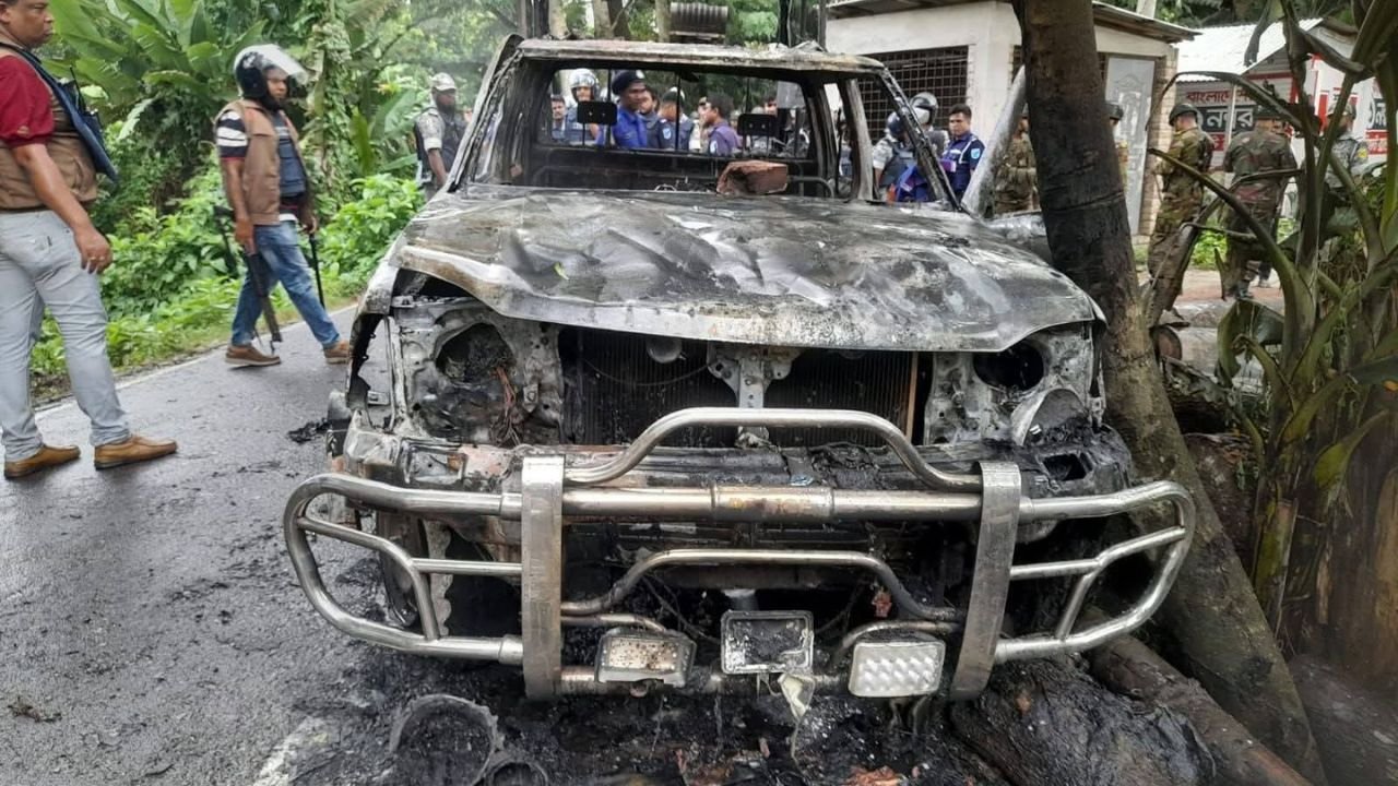 গোপালগঞ্জে পুলিশের গাড়িতে অগ্নিসংযোগ, এনসিপি পদযাত্রা প্রতিহত!