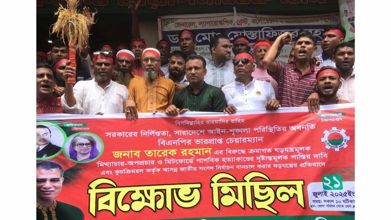 ব্রাহ্মণবাড়িয়ায় কেন্দ্রীয় কর্মসূচির অংশ হিসেবে সোমবার (২১ জুলাই) বেলা ১১টায় জেলা শ্রমিক দলের উদ্যোগে বিক্ষোভ মিছিল ও সমাবেশ অনুষ্ঠিত হয়েছে। সরকারের নির্লিপ্ততা, সারাদেশে আইন-শৃঙ্খলার অবনতি, বিএনপির ভারপ্রাপ্ত চেয়ারম্যান তারেক রহমানের বিরুদ্ধে চলমান ষড়যন্ত্র ও অপপ্রচার এবং মিটফোর্ডে সংঘটিত পাশবিক হত্যাকাণ্ডের দৃষ্টান্তমূলক শাস্তির দাবিতে এই কর্মসূচি পালন করা হয়।