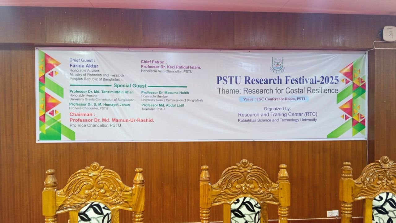 পটুয়াখালী বিজ্ঞান ও প্রযুক্তি বিশ্ববিদ্যালয়ে (পবিপ্রবি) প্রথমবারের মতো আয়োজন করা হলো ‘রিসার্চ ফেস্টিভ্যাল–২০২৫’। উপকূলীয় অঞ্চলের সংকট, সম্ভাবনা ও টেকসই উন্নয়ন নিয়ে দীর্ঘমেয়াদি গবেষণার অংশ হিসেবে বিশ্ববিদ্যালয়ের রিসার্চ অ্যান্ড ট্রেনিং সেন্টারের উদ্যোগে আজ রবিবার দিনব্যাপী এ উৎসব অনুষ্ঠিত হয়।