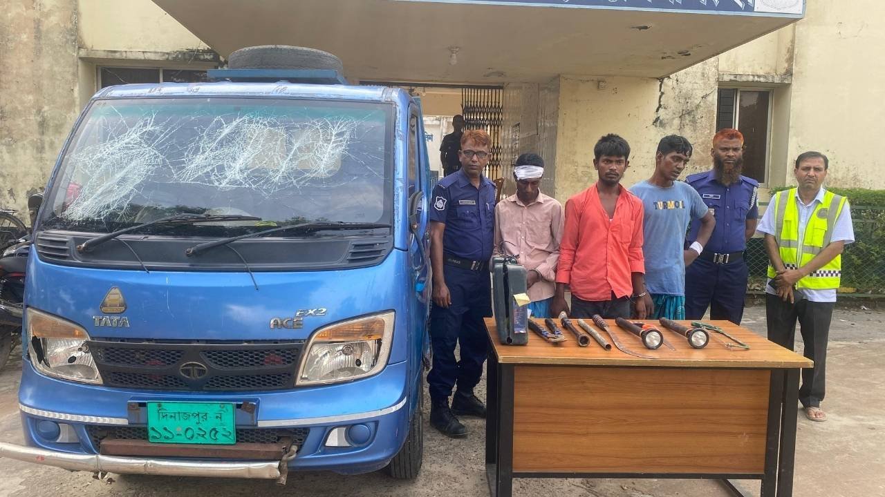 এসময় তাদের কাছ থেকে একটি নীল রঙের পিকআপ (রেজি নং- দিনাজপুর-ন-১১-০২৫২), একটি ধারালো দা, একটি করাত, একটি কাটার, একটি লোহার পাইপ, দুটি চায়না টর্চ লাইট, একটি হেস্কো ব্লেড, একটি লোহার লিবার এবং একটি গ্রিন্ডিং মেশিন জব্দ করা হয়।