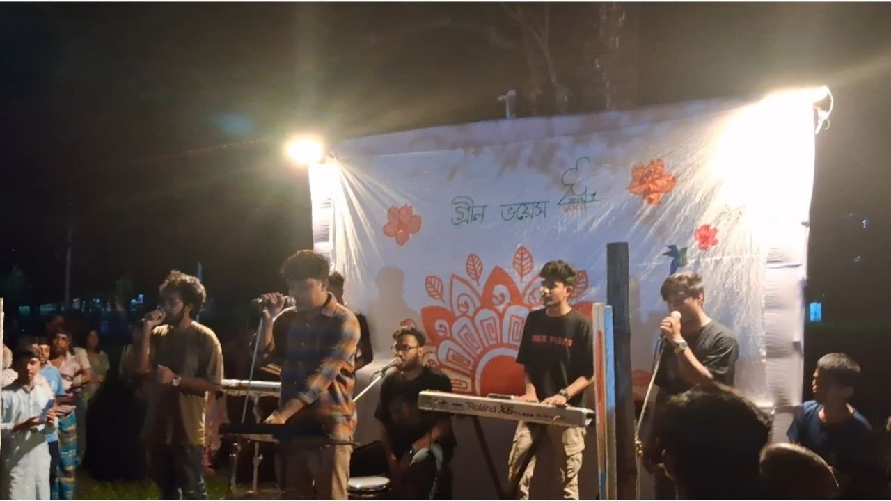 বাংলাদেশ কৃষি বিশ্ববিদ্যালয়ে (বাকৃবি) বর্ষাবরণ উপলক্ষে অনুষ্ঠিত হলো পরিবেশবাদী সংগঠন গ্রীন ভয়েসের ব্যতিক্রমী সাংস্কৃতিক আয়োজন ‘মেঘের আড়ালে’। শুক্রবার রাতে বিশ্ববিদ্যালয়ের প্রশাসনিক ভবনের সামনে আমতলায় আয়োজিত এই অনুষ্ঠানটি শুধু বিনোদন নয়, ছিল পরিবেশ সচেতনতা এবং সংস্কৃতির এক অপূর্ব মেলবন্ধন।