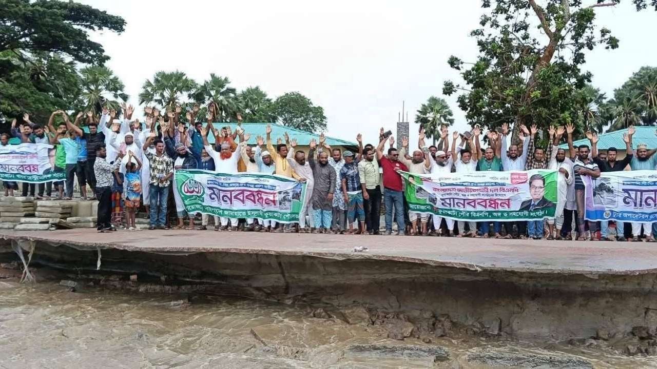 সমুদ্র গর্ভে বিলীন হচ্ছে কুয়াকাটা, রক্ষায় মানববন্ধন