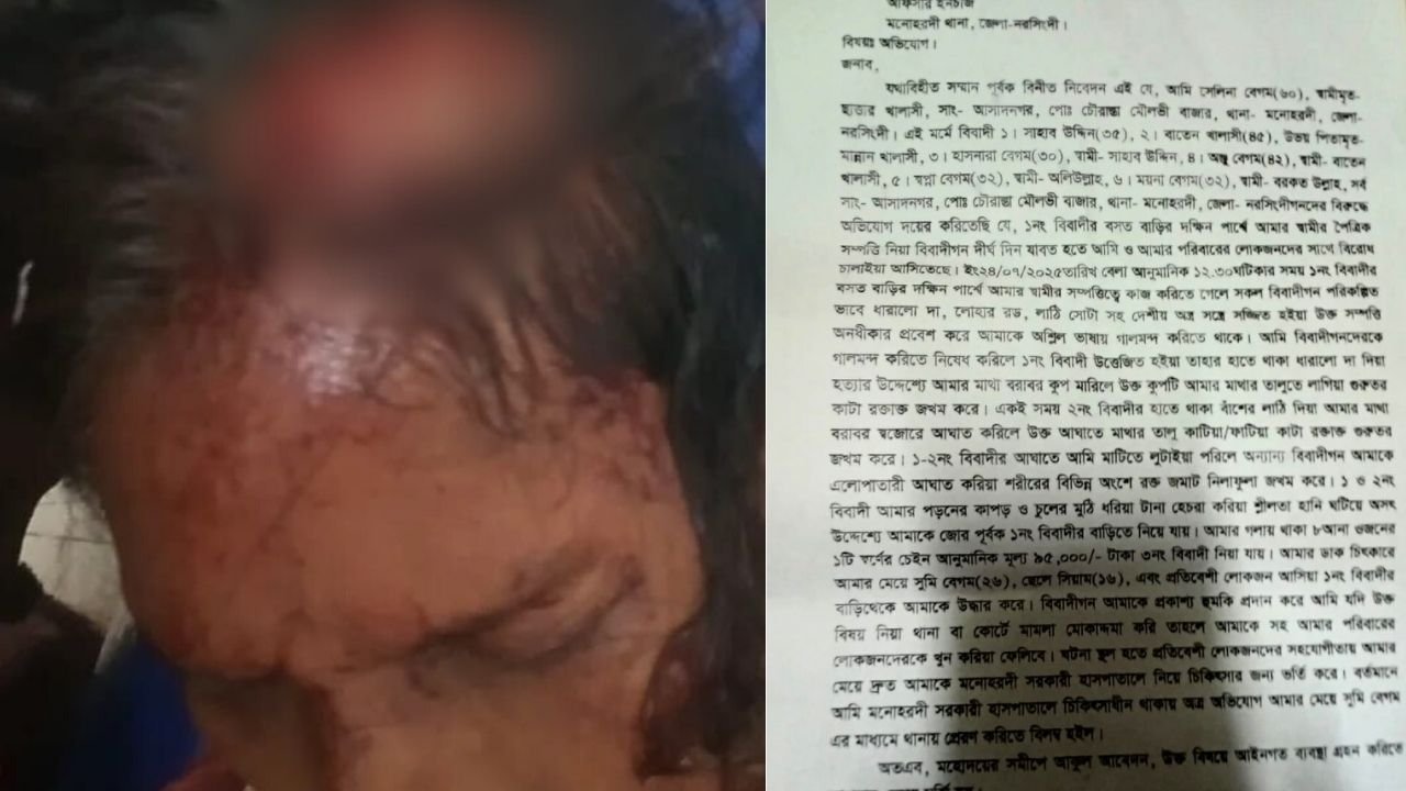 মনোহরদীতে জমি সংক্রান্ত বিরোধের জেরে হামলার শিকার এক নারী!