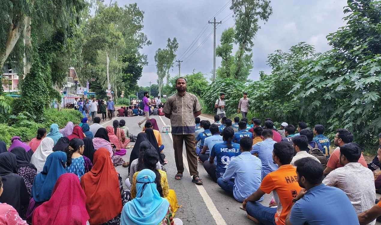 স্থায়ী ক্যাম্পাস নির্মাণের দাবিতে দ্বিতীয় দিনেও মহাসড়কে প্রতীকি ক্লাস রবীন্দ্র বিশ্ববিদ্যালয়ের