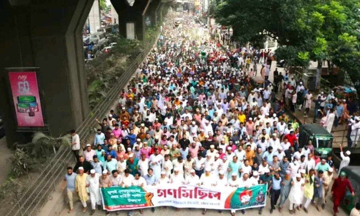 সমাবেশ শেষে জমিয়াতুল ফালাহ জামে মসজিদ থেকে শুরু হওয়া গণমিছিল জিইসি মোড় ও ২ নম্বর গেটে শেষ হয়।