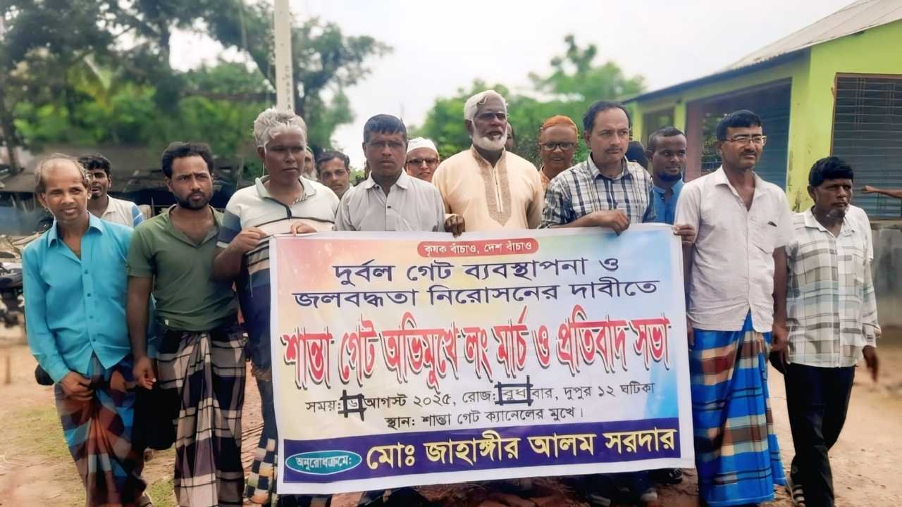 পাইকগাছায় জলাবদ্ধতা নিরসনে লংমার্চ ও সমাবেশ অনুষ্ঠিত