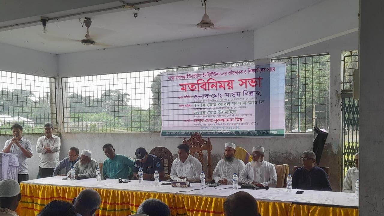 মো: শিহাব উদ্দিন, গোপালগঞ্জ।। গোপালগঞ্জ জেলার কোটালীপাড়া উপজেলার রাজাগঞ্জ ইউনিয়নের মান্দ্রা রাজাগঞ্জ ইউনাইটেড ইনস্টিটিউশনে শিক্ষার্থী ও অভিভাবকদের অংশগ্রহণে এক মতবিনিময় সভা অনুষ্ঠিত হয়েছে। বৃহস্পতিবার, ৭ আগস্ট ২০২৫ তারিখে বেলা ১১টা ৩০ মিনিট থেকে দুপুর ১টা ৩০ মিনিট পর্যন্ত এই সভা হয়।